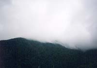 山の天気は変わりやすい・・・・ 安曇村から上高地への道は、混雑していて、道幅がせまいので追い越しもできない状態。疲れはピークに達していて、目を開いたまま眠ってしまいそうになります。しかも、トンネルが多く、またトンネルの中は照明が暗くて、サングラスをしたままだと、何が何だかわからず恐い思いをしながら走り続けます。この辺で、今回の計画は失敗だったと気づき始めますが、時すでに遅し。ひざが笑い、尻の痛みを押さえつけながら、淡々と前の車の後を追いかけます。眠いので歌でも唄ってやれ〜と、大声で歌うのですが、いんちきな歌しか出てこないっ。ますます眠くなる〜っ。ああっ、もうだめだ、限界だっ。ダムの横に駐車場があったので、すべりこむ。そのまま地面に座り込み、しばし風にふかれました。気分が悪い。ああ、トンネルの中の排気ガスのせいだな。うう〜っ。タイムテーブルからは、1時間半以上遅れてます。しかし、気分が良くなるまで目をつぶり休むことにしました。