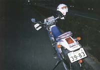R160 もう真っ暗・・・ R160で氷見へ入るころに、雨が降りだし、キトキト寿司をすぎ、トンネルをくぐったあたりでやみそうにもないので、カッパを装着。ここで、Maro氏に電話。カニカニ団も到着したらしく、残るは僕だけらしい・・・・。雨の中、七尾へ向けて最後のひとふんばりです。R160は2車線の広い道で、こりゃ調子いいやと思っていたら、急に1車線の道になってしまい、ふと右手を見たら日本海。おおお、やった〜、日本海だ〜、イカイカ〜。海岸線を走ってりゃ七尾なんだろと思っていたら、海岸線を左に折れ、山の中へ入っていくじゃありませんか。しかも、街灯もなく真っ暗。濡れた路面、雨、真っ暗、いやがうえにもペースが落ちます。七尾駅前で皆と待ちあわせということで、駅のロータリーに到着。午後7時30分。その場に座り込み、カニカニ団を待ちました。470km、14時間半の長旅はとりあえず、ここに終了したのでした。