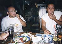 軽井沢をぬけたところ 上田から松本へのR143は、上田市内が大渋滞。なんだかな〜。だいたい長野の人は、速度が遅いぞ。前が空いてるんだから、ぴゅーっと行ってくれい。たのむよ〜。上田市内をぬけると、急に車の数が減り、単独走行になってしまいました。適当にワインディングな道で、セミの声をバックに、松本へひた走ります。後から来る車がないのは、まあいいとしても、すれちがう車もないっていうのは、少々不安になってきます。途中休んでいるバイクを発見。ああ、走ってる人もいるんだあ。なんか安心して、チョ〜シこんでアクセル開けていたら、突然信号アリのトンネルがあらわれて、しかも、信号が赤。前後タイヤ、フルロックで、ブラックマークを残しながら停止。ついでに、松本からR158への道がわからないので、事前に地図で確認。ところで、準備中は地図のコピーを持っていこうと思ってましたが、面倒なので結局マップルそのものを持ってきてたりします・・・(重い)。松本市内に入り、さっき確認したルートなどすっかり忘れ、道なりに走ってたら駅前に出て、なんとかR158へ。ここで給油。R158は流れているものの、速度が遅い。40km/hで走ってたんじゃ、平均速度はそれ以下になっちゃうじゃんか〜。お〜い、なんとかしてくれ〜。安曇村へ入る手前で、Maroさんに電話。カニカニ団はまだ到着してないらしい。