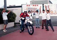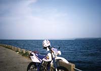 金沢の方で仕事だっていうSaka氏に、わがままを言って仕事をキャンセルさせたカニカニ団の一行は、七尾駅を後にしてさっそうとゼンソン号を出発させました。さて、海水浴だっていうから、すぐ近くの海水浴場だろうと思っていたんですが、カニカニ団御用達ゼンソン号の後についていくと、珠洲80Kmという標識が・・・。がーん。おいおい、今13:00くらいだから、80kmっていうと2時間かかるとして・・・、15:00ちかくになっちゃうぞ。まずいなあ、暗くなってからの高山越えとかは、危険がアブナイ。このへんで勝手にUターンしちゃおかな。でも、急にいなくなると何言われるかわかったもんじゃないしな〜。こりゃ往路と同じルートで戻るのは不可だな。他のルートを検討しよう・・・。の〜てんきに走るゼンソン号とたっつぁんファミリア1号の後を追いながら、僕は復路のルートを考えました。とりあえず、高速だ。アベレージスピードを3桁台に維持するのは、このバイクでは困難だけど、信号がない分楽なはずだ。たしか、北陸道とか上信越道とかあったな〜。往路を検討するときは、全然考慮してなかったけど、よし、それで帰ろう。そう考えるとリラックスして、2台の後をもくもくと走り続けました。途中給油のため一旦休憩し、なんとか珠洲に入ったのですが、ゼンソン号の様子がおかしい。海岸の方へは行かず、戻るような迷走をしています。そして、着いた所は、珠洲駅。半漁仁氏がいよいよ七尾発の電車に間に合わないというので、単独能登線で戻ることになったのでした。海水浴場の方で待っていたSaka氏を強引に呼び出し、これまた仕事を早めに切り上げたMaro氏に速度違反を強要して、珠洲駅で待ち合わせ。そして、こだわりのランチァ・テーマに乗って現れた、海水パンツを昨日からはいているSaka氏とご対面。感激の初顔合わせに、涙しながらも、半漁仁氏の発車の時刻は迫り、15:34万歳三唱のなか、電車は出ていったのでした。僕もまた、ここで帰路スタートとすることにしました。いいっちゅうのに、これまた万歳三唱に見送られて、珠洲駅を後にしました。