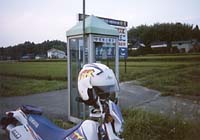 去っていく恋路号 手前はSaka氏 さっき来たR249を一路七尾へと向かいます。日本海を左に見ながら、快適なワインディングロードが続きます。バイクでツーリングしてる方も多く、何台かすれちがいました。海岸線の山側には、猛禽類の鳥(ノスリかなあ?)が多く飛んでいて、カラスばっかりになってしまった関東とは、えらい違いで自然の豊かさに感激です。七尾までは車も少なく、巡航速度を3桁寸前にキープして突っ走ります。この勢いなら明るいうちに高速に乗れそうかな。七尾からはR160を氷見〜高岡へ。再び給油のタイミングが近づいてきたので、高岡手前で休憩し、地図でルートの確認、給油地点を検討します。この時点での計画はR8を北上し滑川ICから北陸道にアクセス。上越ICでオフラインして、R18で長野あたりから上信越道にアクセスしようというもの。実際には上信越道は中郷からアクセスできるのですが、今回マップルは中部版しか持参せず、これがまたちょっと古かったため、僕は長野あたりでのアクセスだと思い込んでしまってました。この勘違いが、大変なハードツーリングになろうとは・・・・。ともかく、次の給油地点はなるべくひっぱってR8に乗ってからと決定して、キトキト寿司を右に見て再スタート。R160からR8はなにごともなく通行。R8に入り予定通り給油(18:46)、近くのローソンで軽く食事。R8は広い道で、がんがん流れていました。来るときもこれに乗ればよかった、などと考えながら富山市をすぎたあたりで暗くなってしまいました。冷静に考えたら、計画でさえ12時間かかると読んでいたので、今ここで真っ暗ということは、水戸へ到着するのは日が昇るころになってしまうことに気がついたのでした。オフロードバイクのヘッドライトなんちゅうものは、とりあえずついてます状態で、4輪のそれと比べたら月とスッポン、心細いことこのうえなしです。こうなってくると、大型のオンロードバイクがほしいな〜、なんてことを思いながら、高速をめざしました。日が落ちると肌寒くなってきて、北陸道滑川ICにアクセスできたころには、もう真っ暗闇でした。なんとか高速に乗れたので、もう一度ルート再考しようと、有磯海SAに入りました。コーヒーを飲みながら、かたわらの「みなさまの伝言板」を見ると、カニカニ団からもやし君へのメッセージが書き込まれていました。おそるべしカニカニ団。
