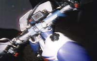 北陸道を疾走するTT-R(イメージ映像) 巡航速度も寒さのため、次第に落ちてきました。90km/hを維持するのが難しくなり、80km/h台になってしまいます。デイパックがやたら重く感じられ、PAごとに休憩が必要です。暑さ対策を考えて夏用のジャンパーを着ているので、風通しがとっても良すぎ。こりゃいかん。PAで袖口にビニール袋をまきつけ防寒対策としますが、ほとんど効き目がありません。首にはタオルを巻き、Tシャツを3枚重ね、まだ寒いので、腹にバスタオルを巻きました。それでも効果はなく、40分走って、30分は休むの繰り返しです。トンネルが連続してるうちは、中が温かいので良かったのですが、米山ICを過ぎて何にもなくなると、極北探検隊状態。も〜ろ〜としながら長岡JCTで関越道にトラバース。そうだ、ラーメン食べてパワーをつけよう。しかし、ラーメンパワーも長続きせず、いよいよ谷川岳を前にして、カッパを着ることに。でも、カッパっていうのは、雨を遮るもので、防寒効果はゼロなんですよね〜。気休めにはなるな、と思いながら関越トンネルをめざしました。あれ?道路が上り坂だ。標高がどんどん上がっていくぞ。寒いな〜。あ、表示温度が14℃だ。ひえ〜死む〜。湯沢の町のバブリーな建物を見ながら、風呂にはいりたい一心でアクセルを開けます。関越トンネルは温かくて、しばし中で休んでしまいました。トンネルを出ると再び低温と横風の攻撃です。ただただ苦痛をこらえ、燃料補給のタイミングを計りながら走り続けていると、さっき自動販売機で流れていたイッツァ・スモール・ワールドが頭の中でエンドレスになっています。♪せかいっじゅうっ、どこだっあって♪せ〜かいは〜せ〜まい〜♪せ〜かい〜はひ〜とつ〜♪