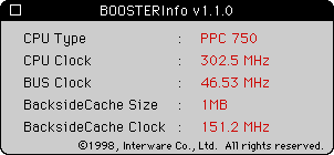 念願のINTERWARE BOOSTER G3/300/1M/150をついに、ゲットしました。海外製品から比べたらかなりお値段がはりましたが、まあ、国産だし、以前よりはず〜っと安いしと無理に納得してます。店頭の展示機などで、G3マシンのスピードには感嘆していたのですが、本体を買い替えるとなると、メモリーの値段がバカにならず、G3ドーターカードのほうが安上がりだと判断しての愚行です。