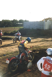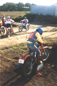 トライアルという競技がありまして、どんな競技かと申しますと、あらかじめ設定されたコースを、バイクに乗って足をつかずに走破すればOKというものです。足を1回つくと、減点1、2回つくと減点2、3回以上は3点、コースを逸脱したり出口までたどり着けなければ5点、足を1度もつかず、出口まできれいにたどり着けば減点0です。いってみれば、ゴルフに似たようなもんです。つまり減点0がパープレイってなわけです。しかし、コース設定はパープレイを阻むように造られています。起伏があり、グリーンの手前には、バンカーあり、とプレイヤーをいらだたせるゴルフコースのように。もうひとつゴルフと似ているのは、それが競走ではなく競技という点です。他のプレイヤーとの駆け引きではなく、パースコアとの勝負だということです。乗馬にたとえれば、モトクロスは障害、トライアルは馬術ということになります。