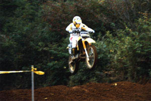 当時流行っていたのがエンデューロレース。2時間耐久とか、4時間耐久とか、モトクロスコースを延々走るわけです。参加できるマシンは、市販されている普通のオフロード車で、多少の改造は認められてました。ひとりで2時間走っちゃってもいいんですが、くたびれますから、2人組で、交代しながら走ることになります。いったい、なんだってレースをやることになったのか?